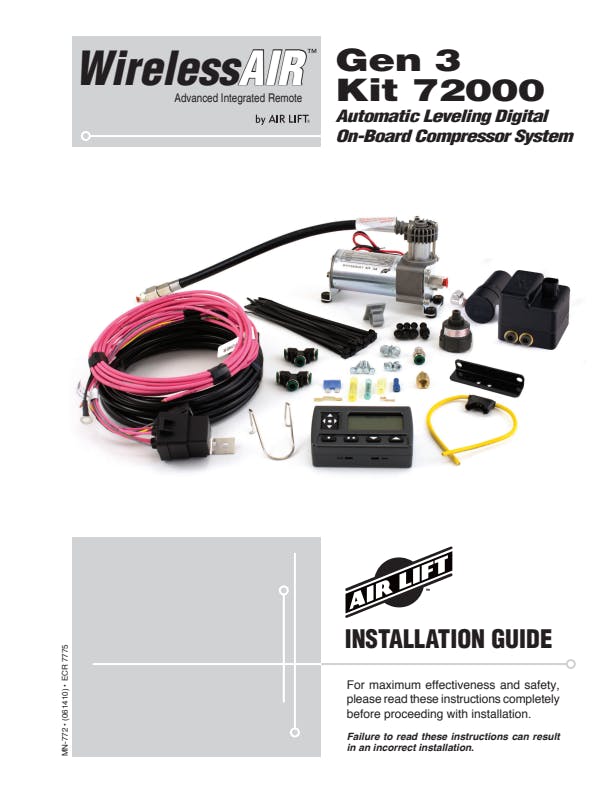Air Lift 72000 WIRELESSAIR; LEVELING COMPRESSOR CONTROL SYSTEM