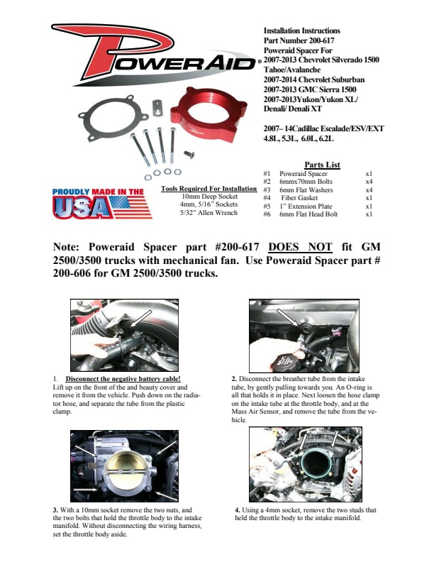 The AIRAID Throttle Body Spacer is designed to enhance mid-range torque using a patented Helix Bore which spins intake air going through the throttle body spacer. Includes mounting hardware.