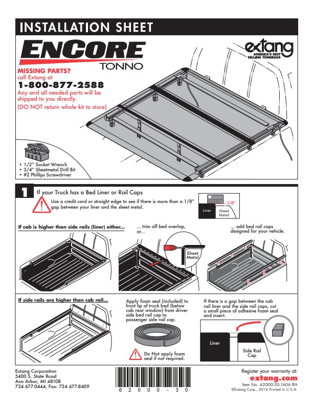 The Extang Encore Tonno is a low profile, hard tri-fold truck bed cover that offers unparalleled versatility. The Encore gives you easy access to your truck bed from the both front and rear panels! The EnCore truck bed cover is self-positioning for quick and easy installation. Extang engineered rear latches lock the cover at the tailgate and supplemental tethers secure your cover to the side rails. The wide-opening front panel provides quick access to the front of the truck bed and can be locked featuring BOLT , one-key lock technology. Extang-tuff 1-inch thick panels are made of automotive thermo-plastic (TPO) for unmatched impact resistance, superior UV protection and thermal stability. A textured, powder coated frame and matte black rubber components combine to make the Extang Encore Tonno more stylish, easier to use, and more water resistant compared to any other truck bed cover!
