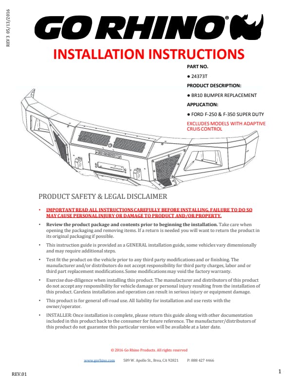 Part of Go Rhino's famous BR Bumper family. Go Rhino BR10.5 Winch-ready HD Front Bumper Replacements are laser measured and designed in 3D CAD to fit the contours of each vehicle. The bumper features a steel two-piece design that holds winches rated up to 16,500 pounds. Winch tray and mounting brackets are made from 1/4 steel. The BR10.5 comes with a Limited Lifetime warranty on materials and construction and a 5 year warranty on the Textured Black Finish.