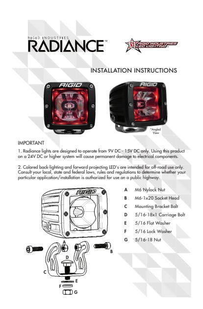 Professional Installation Recommended; RIGID Radiance; Backlight| Attributes | |