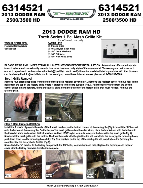 - 1 Pc Insert - Requires Cutting Of Factory Grille And/Or Drilling